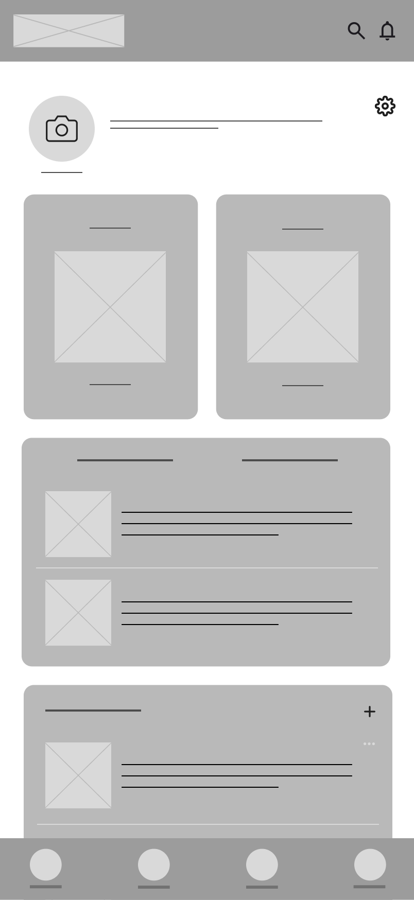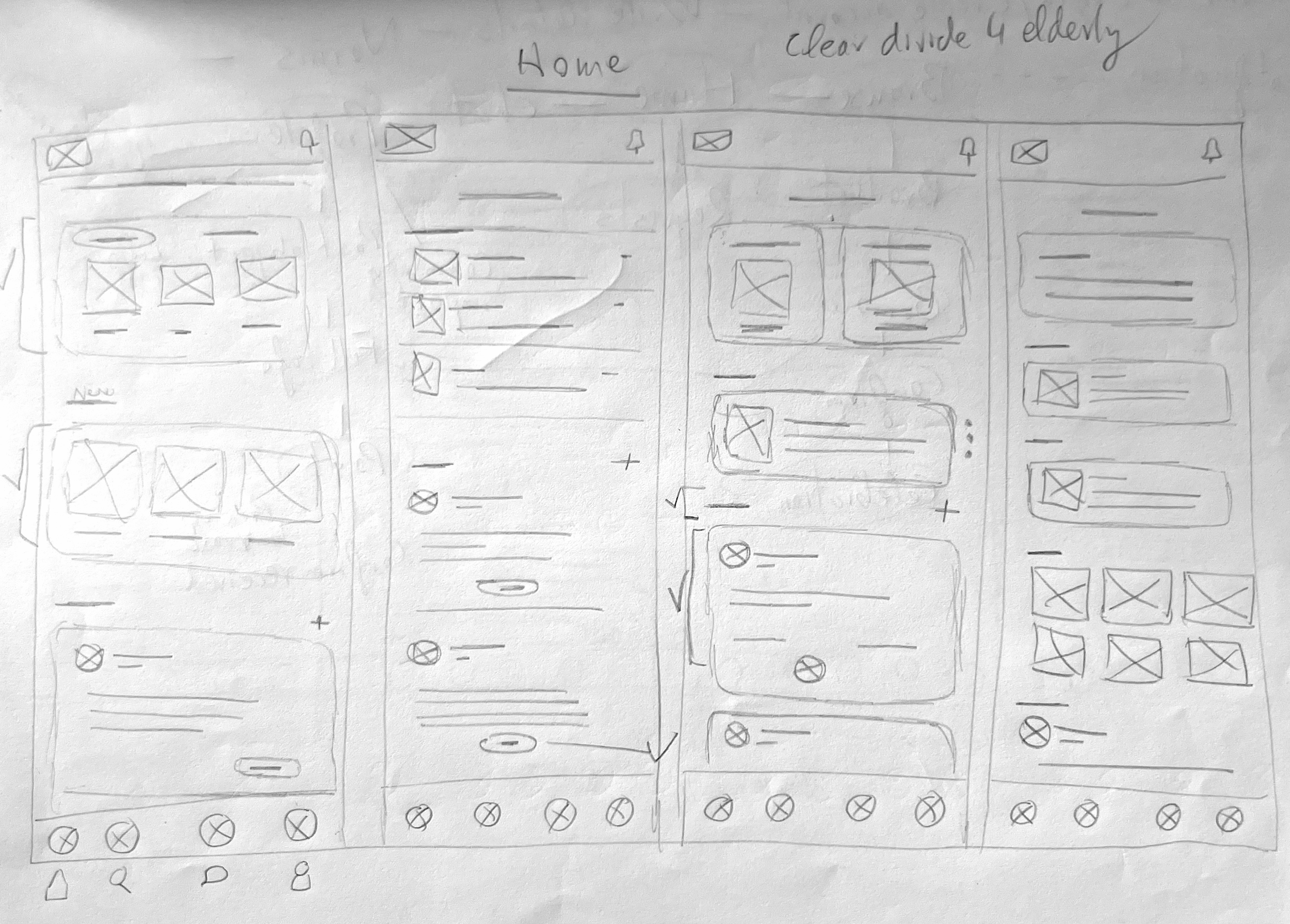 A first rough wiraframes were created to gather and test the indispensable functions and screens with users and make the necessary changes in the architecture of the app. The final layouts were digitalised into low quality wireframes.
