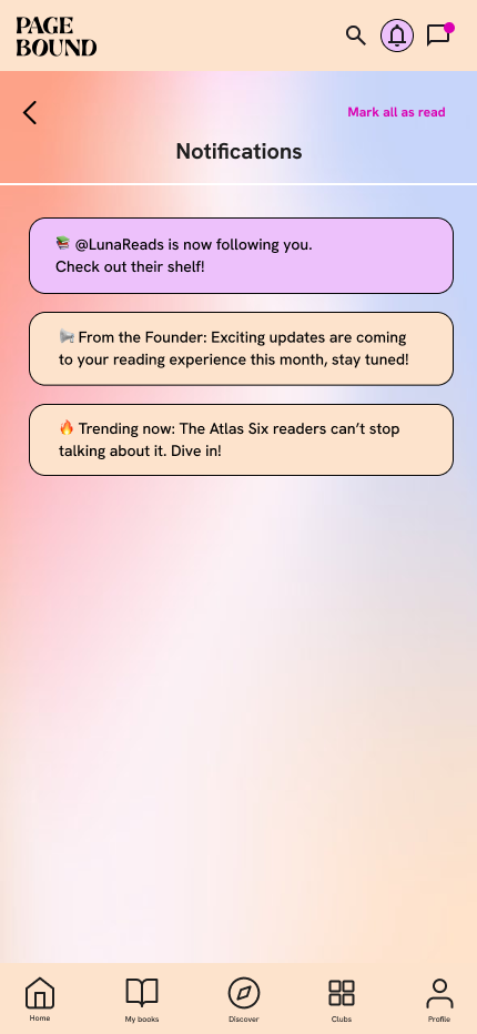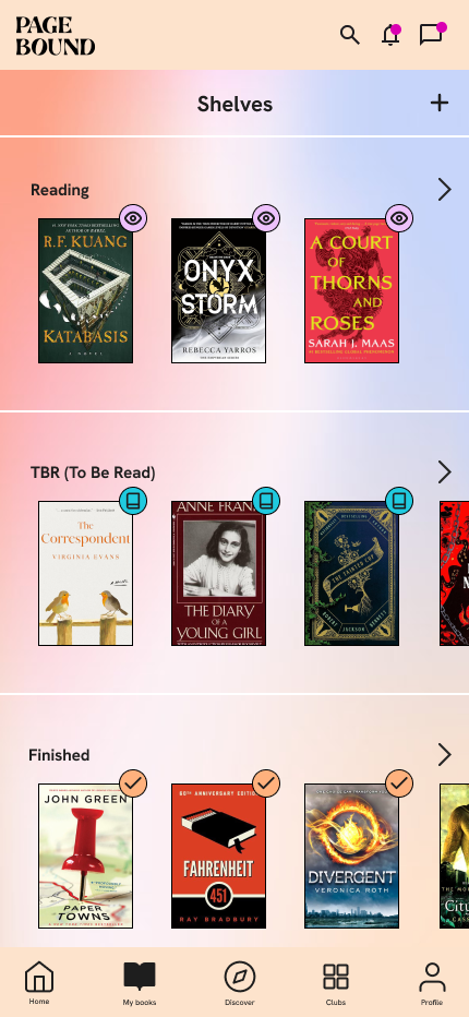 Pagebound is a social reading site and app that lets users interact with each other, focused specially on millennials. Due to the vast majority of users being centered on the app, the redesign focuses on a mobile-first approach.