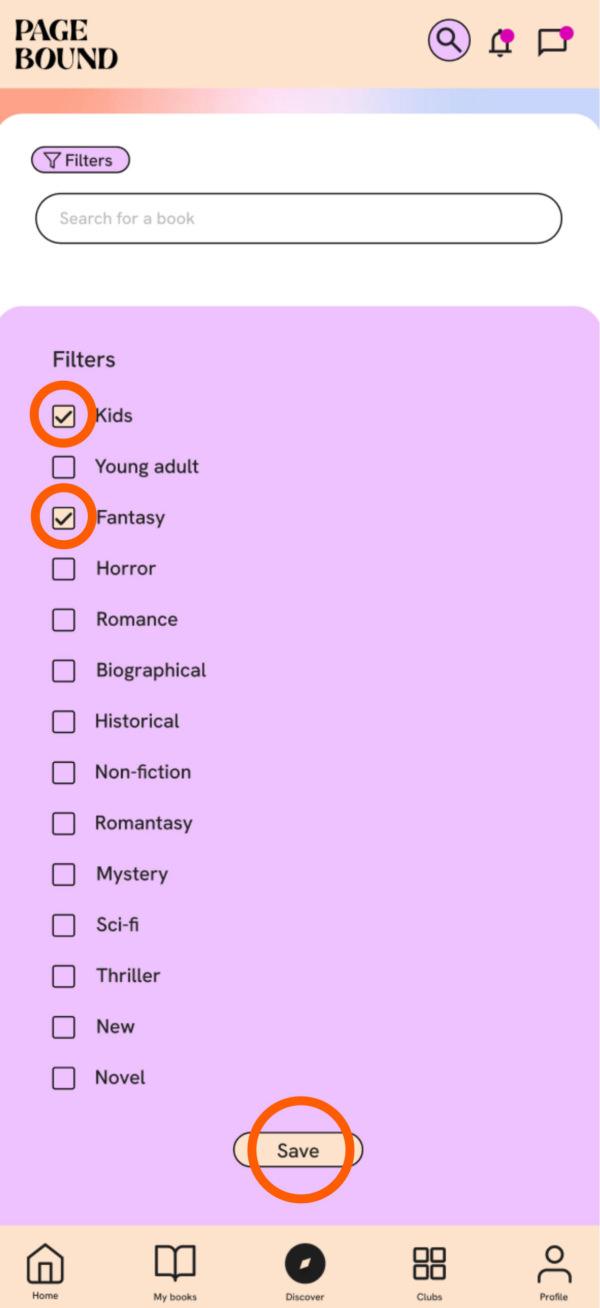 Filter function allowing to only see only books in the selected categories solving the pain point of seeing inappropriate books.