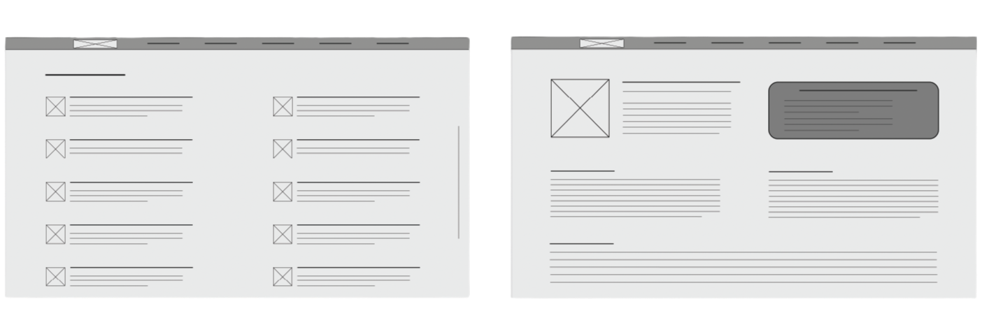 Based on the initial sketches, wireframes were created to serve as a guide for the creation of the final screen design.
