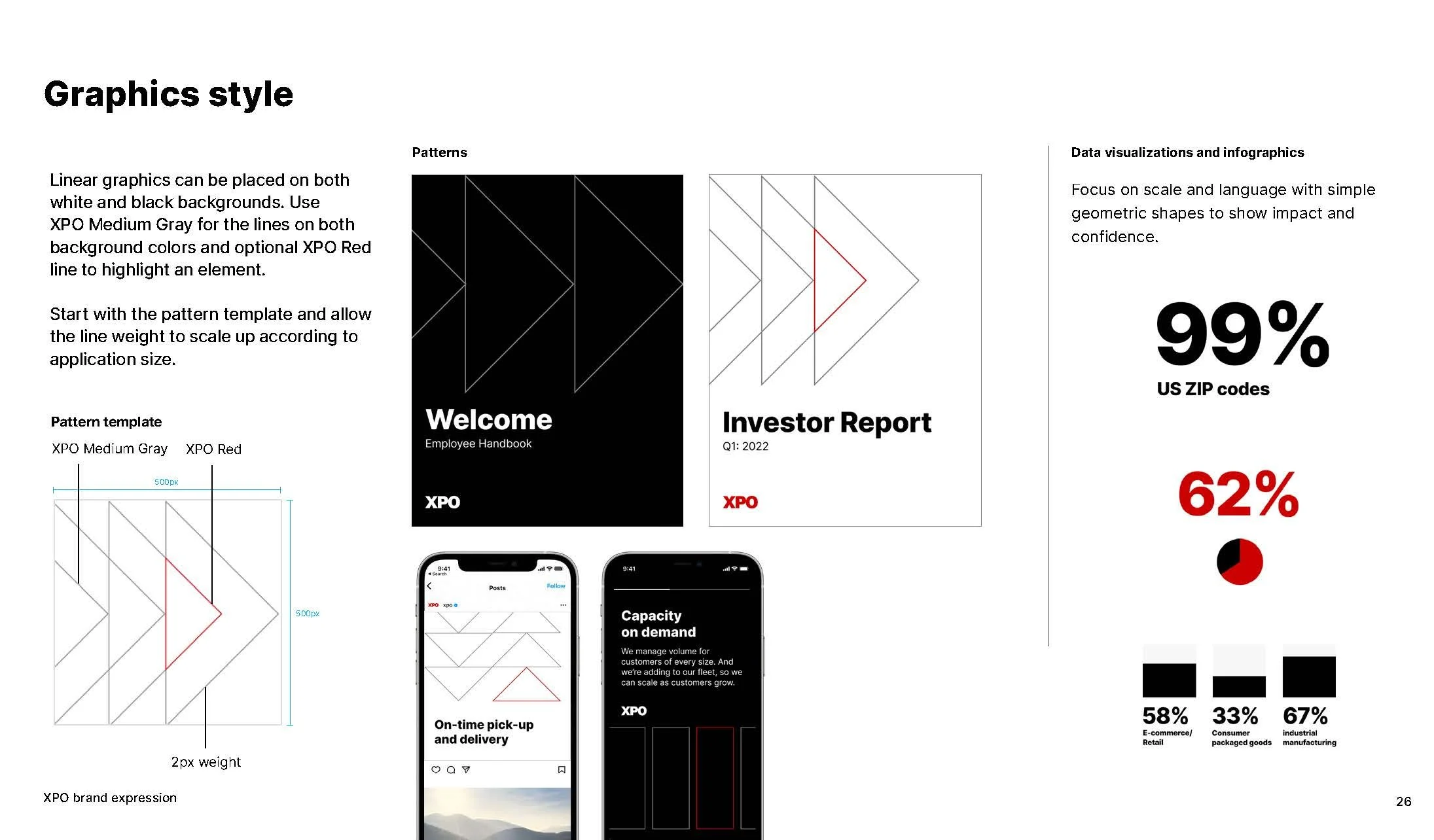 Here we have a showcase of different projects and social media posts for XPO Logistics.